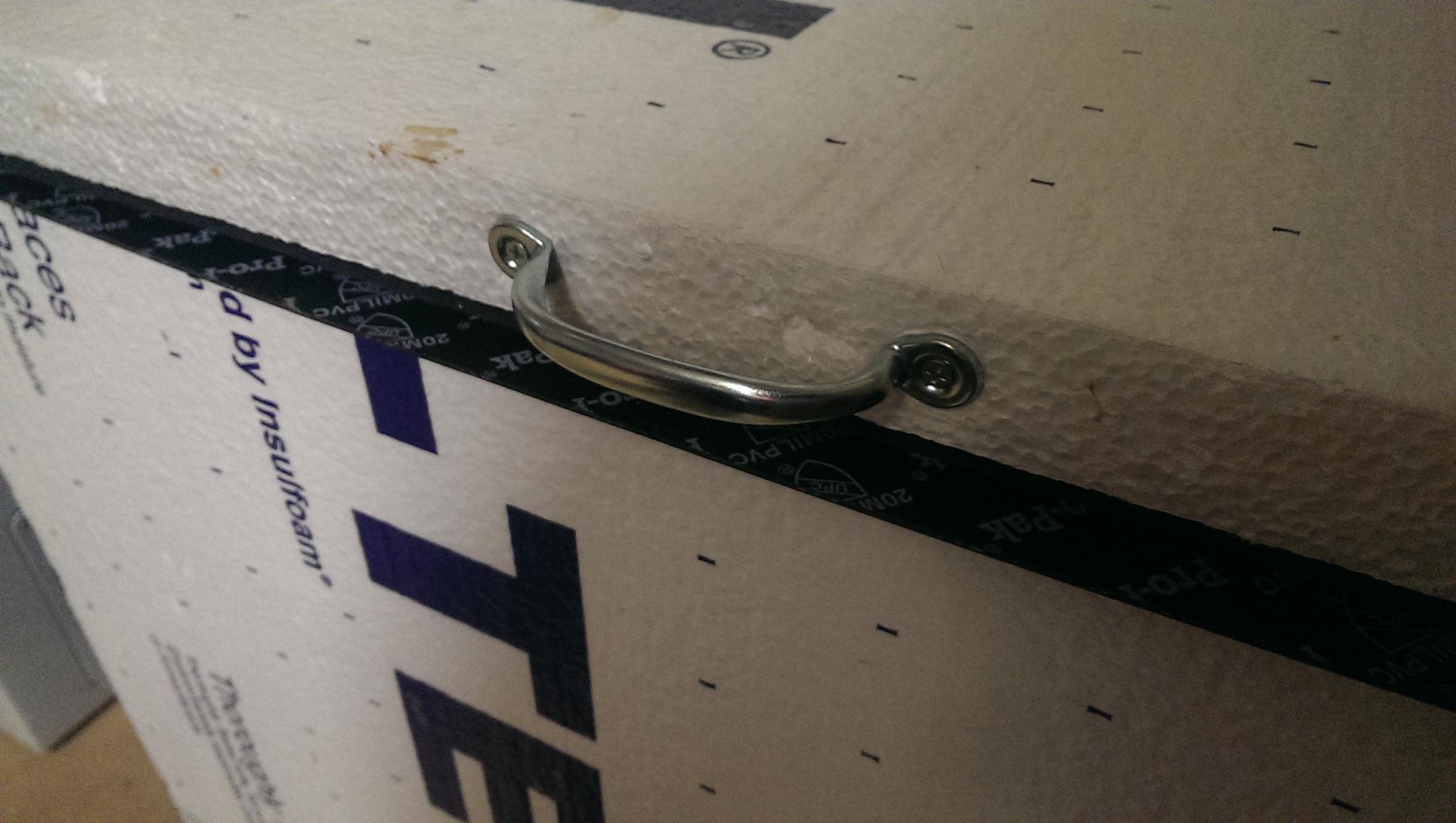As a nice touch, a cheap handle is attached. It's screwed into wooden dowels about 8 inches long each that make it solid in the styrofoam.